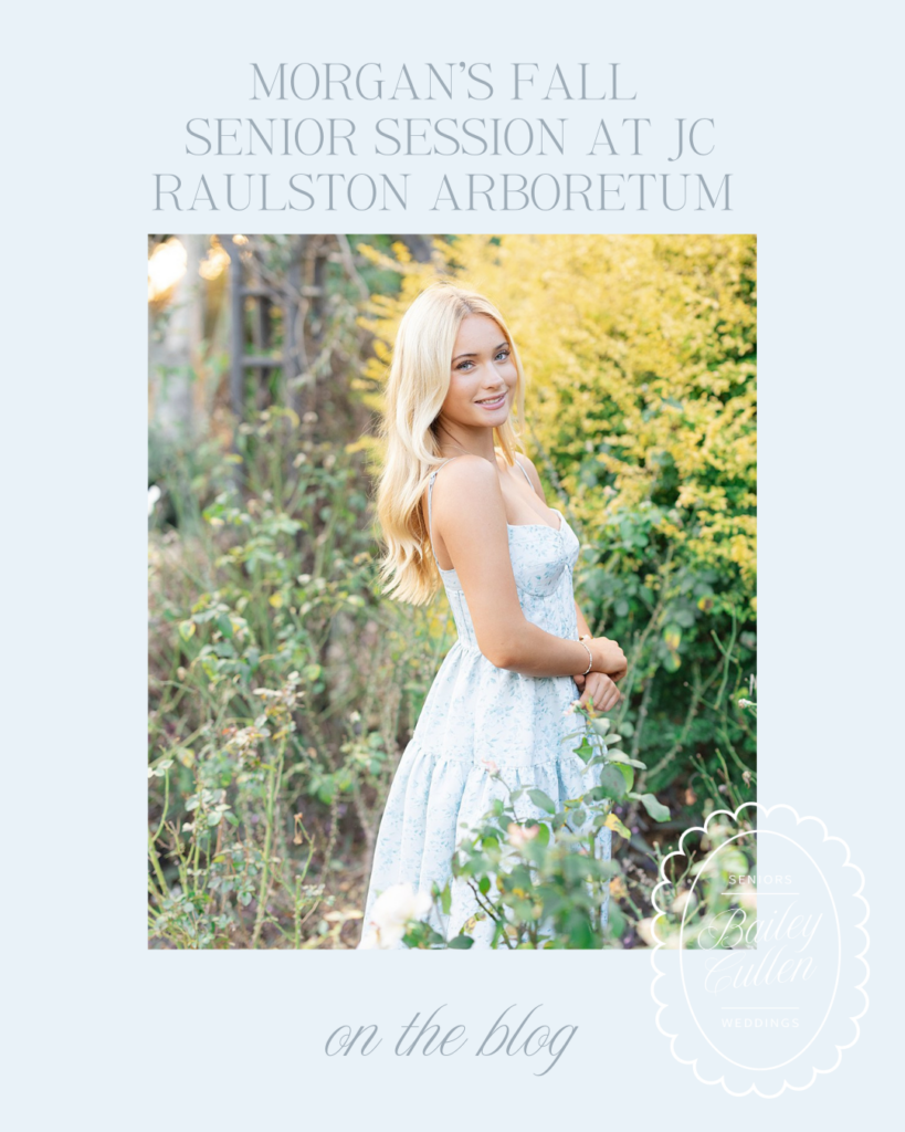 Morgan’s fall senior session at the JC Raulston Arboretum in Raleigh was such a fun evening. Fall sessions during senior year are always some of my favorites as a Raleigh senior photographer, and Morgan’s shoot was the perfect example of why. I always recommend taking senior photos in the fall semester of your senior year if you can. That way you have your photos ready to use for the entire senior season from announcements to graduation celebrations and everything in between. And this night could not have been more perfect!