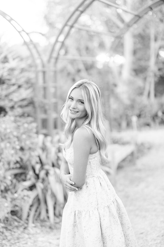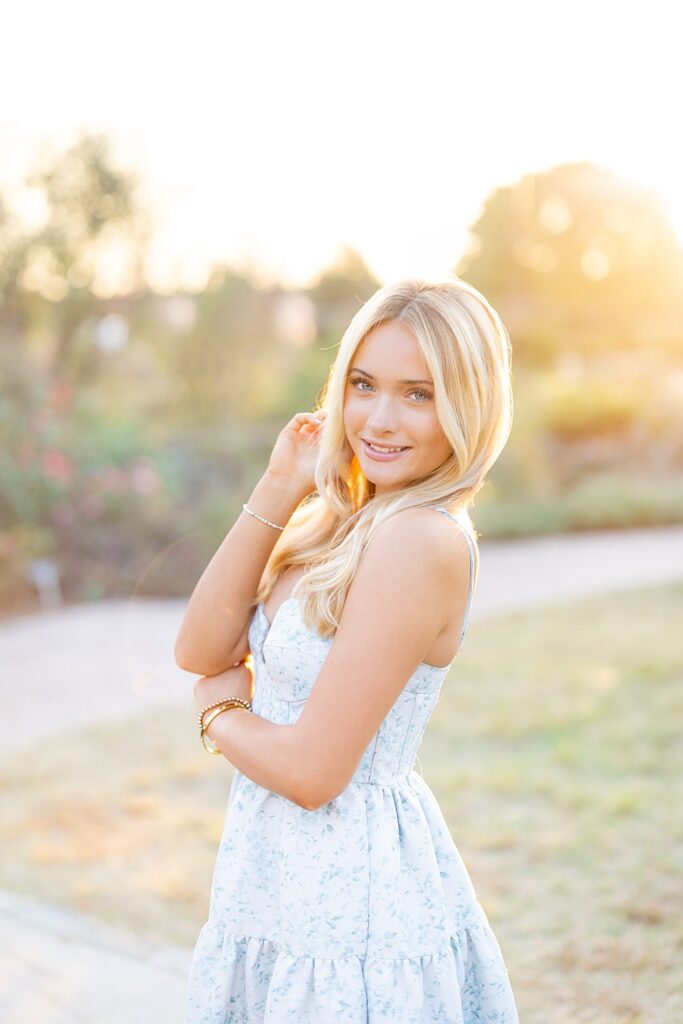 The weather was amazing, and the golden hour light that evening was absolutely beautiful. The JC Raulston Arboretum is one of my favorite locations as a Raleigh senior photographer because there are so many different spots that photograph beautifully.